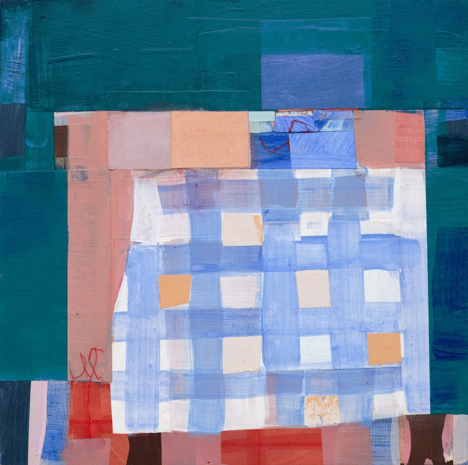 PICNIC BLANKET #2. Acrylic, mixed media, collage on panel, 8 x 8 in.